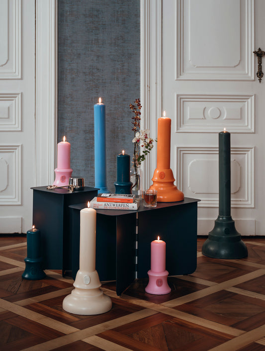 At first glance, Baruch may look like a candle perched on a holder of the same colour. In reality, it’s a fully freestanding candle – a sculptural object whose effortless appearance belies its sophisticated, multistage handmaking process. From the mould creation to the drilling and connecting of the two pieces, every detailed step is carried out meticulously by hand. The optimal cotton wick and wax quality combine for a perfect-burning candle.
