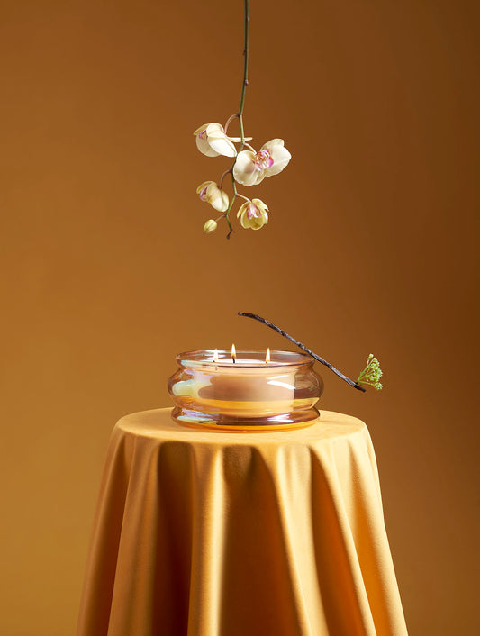 Like an orchestra, the elements of our sizable scented candles work in complete harmony to perfectly release their premium, multifaceted fragrances. The three wicks, the quality of the hand-poured wax, the dimensions of the glass: a secret recipe scrupulously fine-tuned by our master candlemakers. Thanks to their special double-wall glass design, the candle can burn to the very end, leaving no remnants. An empty glass ready to be reused again and again with a Gabrielle refill kit.