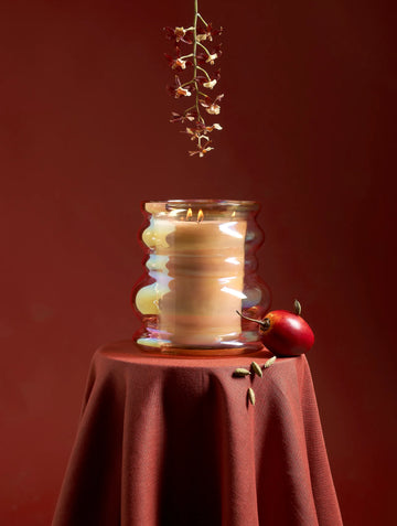 Cotton provides a controlled capillary action that supports steady combustion when paired with the appropriate wax and form. The wick is neither decorative nor interchangeable. Its dimensions and behaviour are matched precisely to each candle’s structure.